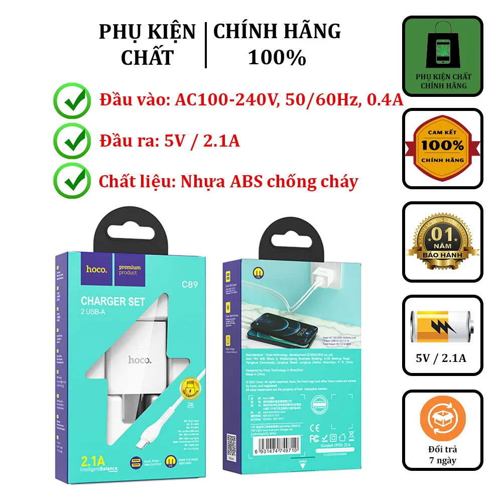 PHỤ KIỆN CHẤT CHÍNH HẴNG CAM KẾT SẢN PHẨM SẠC ĐƠN HOCO C89 SẢN PHẨM 100% CHÍNH HÃNG