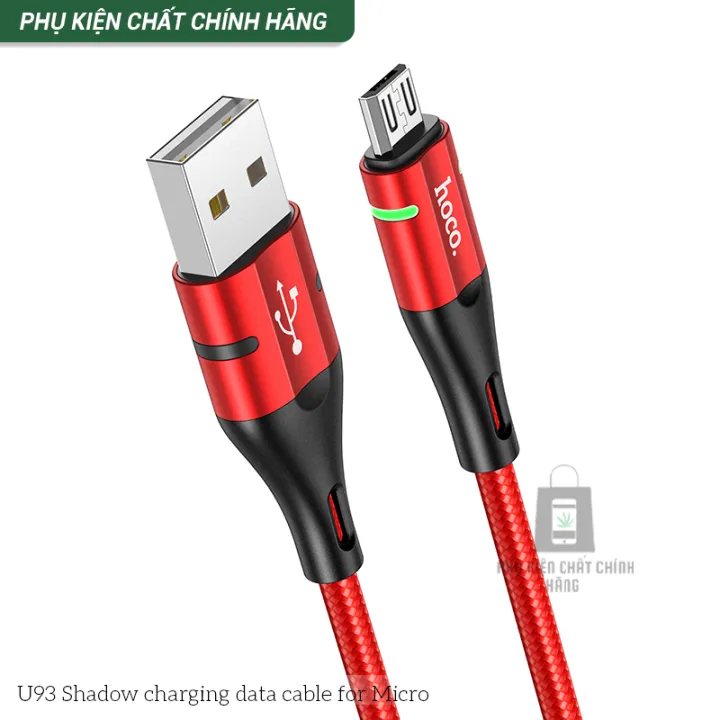 Cáp U93 Là loại cáp sạc nhanh với dòng điện tối đa 2.4A, có đèn LED khi sạc điện, thiết kế ngoại hình nổi bật 2 mầu Đỏ và Đen. Chất liệu dây bên ngoài được bện bằng sợi Polypropylene có tính bền cơ học cao (bền xé và bền kéo đứt), khá chắc chắn, không mềm dẻo như PE, không bị kéo giãn dài do đó được chế tạo thành sợi. Chịu được nhiệt độ cao, có tính chất chống thấm oxy, hơi nước, dầu mỡ và các khí khác. Lõi dây được kết lưới bằng 118 sợi dây đồng. Chất liệu đầu nối là hợp kim nhôm phủ sơn tĩnh điện, chống tê điện hoặc chạm mát cực tốt.