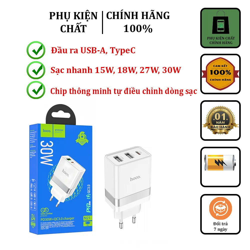 PHỤ KIỆN CHẤT CHÍNH HẴNG CAM KẾT SẢN PHẨM CỐC SẠC NHANH PD 30W HOCO N21 SẢN PHẨM 100% CHÍNH HÃNG