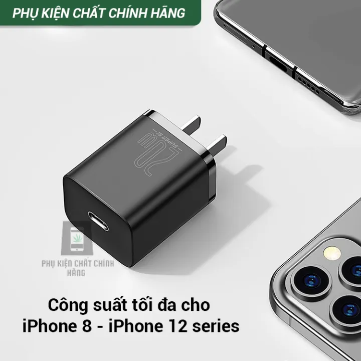 - Bộ Cốc sạc và Cáp sạc nhanh Baseus Super Si PD 20W Cho Điện Thoại IP 8plus đến IP 13PRM. Thương hiệu: BASEUS. - Công suất đầu ra tối đa: 20w. Giao diện đầu ra: Type C. Nguồn điện: Nguồn A. Chứng nhận chất lượng: ROHS. Mẫu mã: - - Cốc sạc Type C PD 20W. Đầu vào: 100-240V / 0. Đầu ra