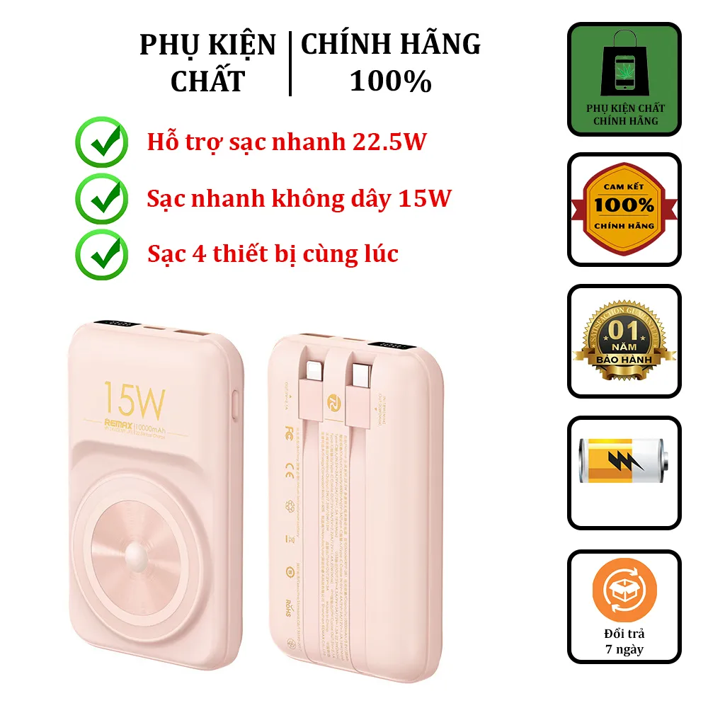 Đặc tính sản phẩm Sạc dự phòng 10000mAh không dây Remax RPP 281 cao cấp - Hàng Chính Hãng Bảo Hành 12 tháng.