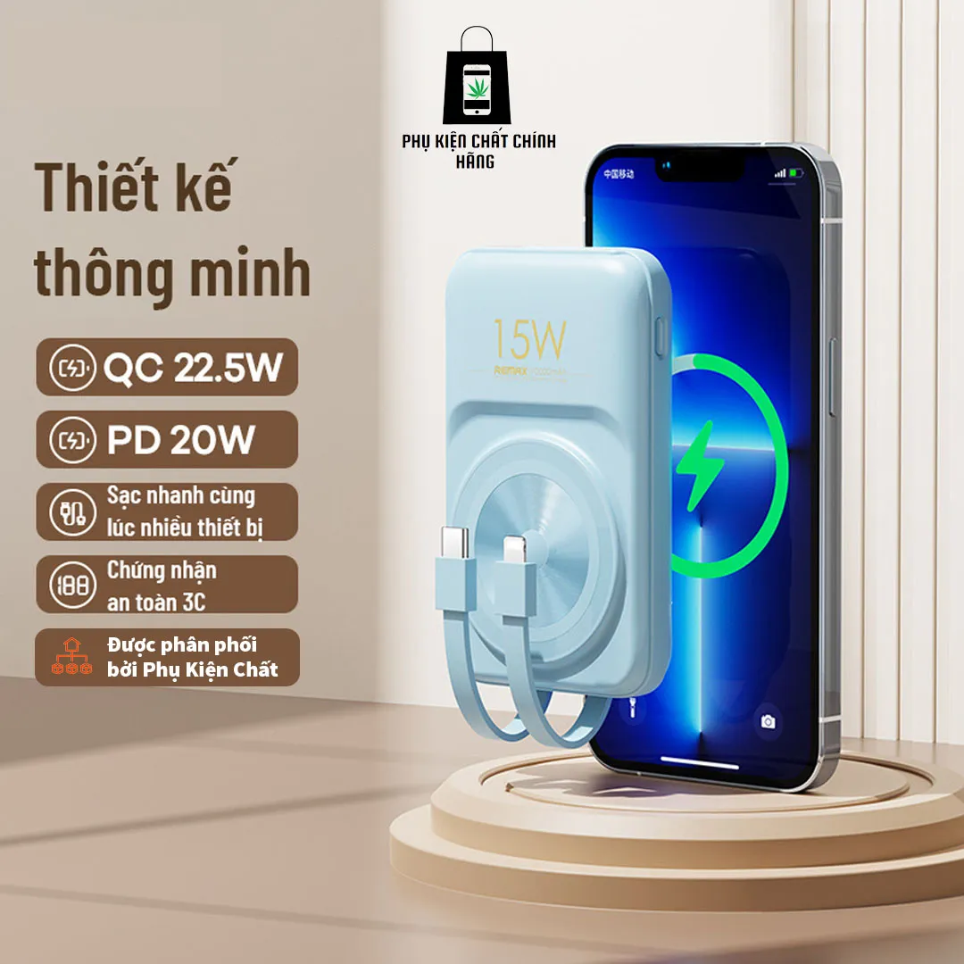 Sạc dự phòng 10000mAh không dây Remax RPP281 cao cấp - Hàng Chính Hãng Bảo Hành 12 tháng.