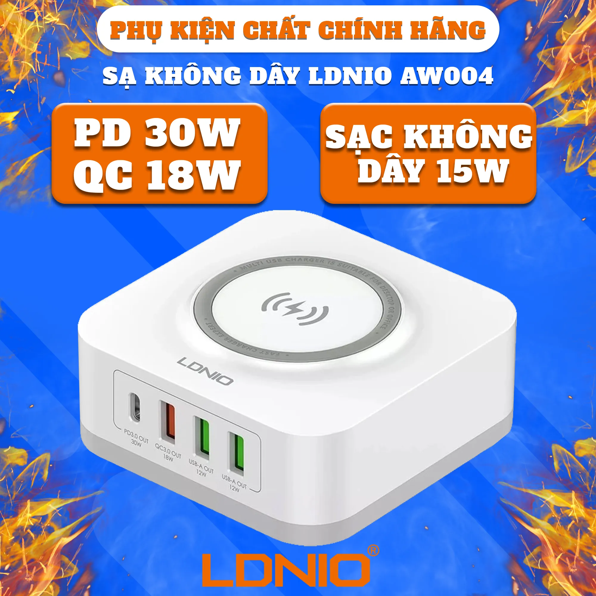 Mô tả sản phẩm: Bộ Sạc Không Dây 32W LDNIO AW004 Đa Năng