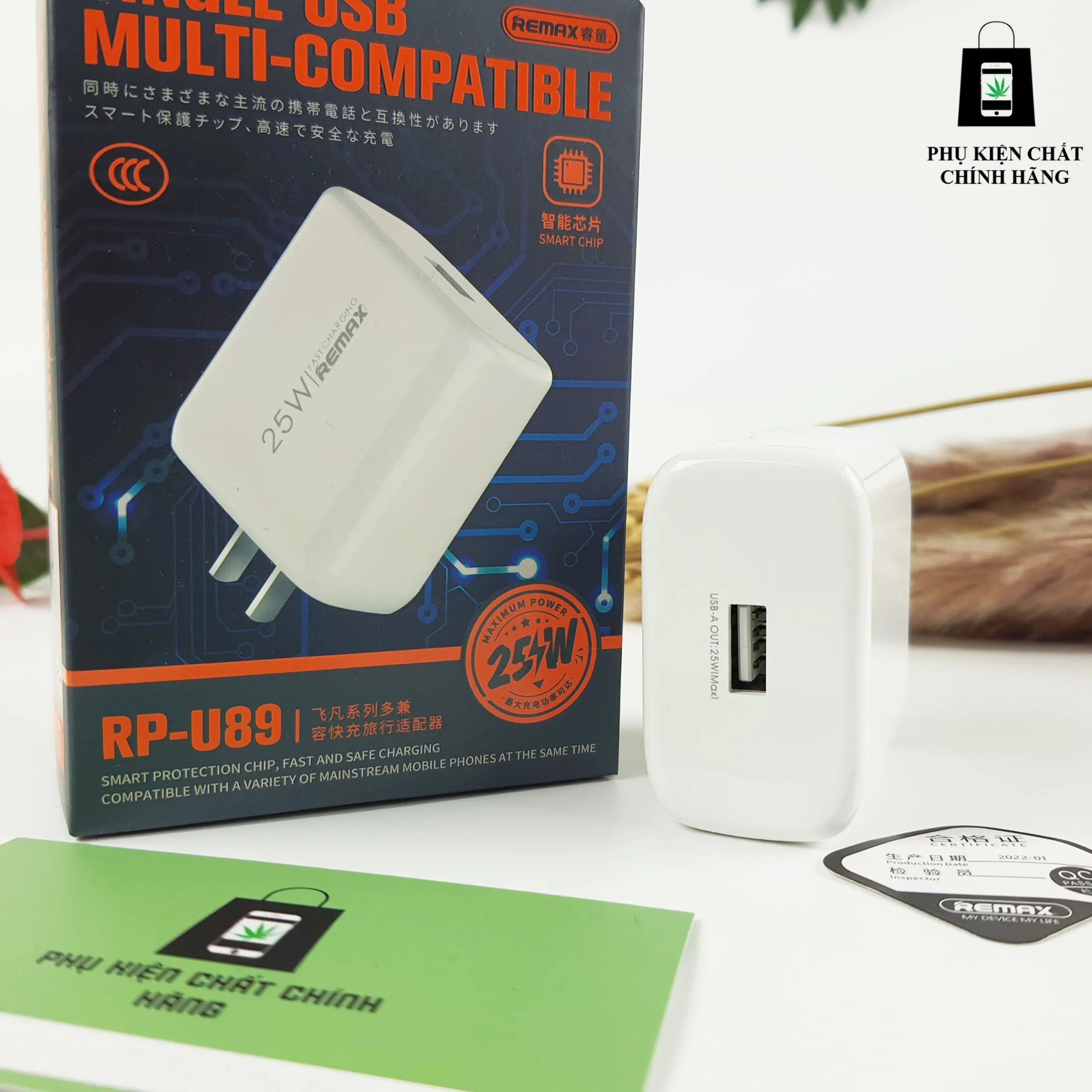 Củ sạc nhanh Remax RP-U89 cổng USB 25W hàng chuẩn hãng bảo hàng 12 tháng.