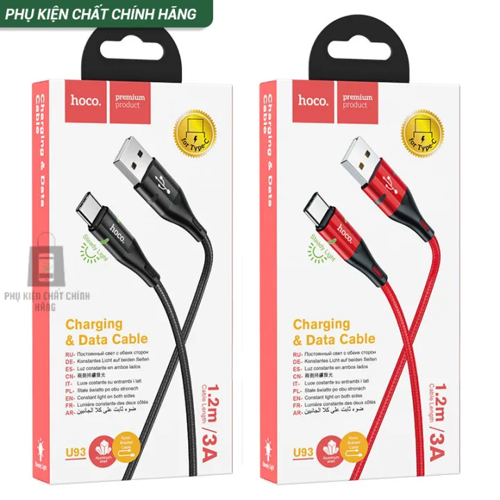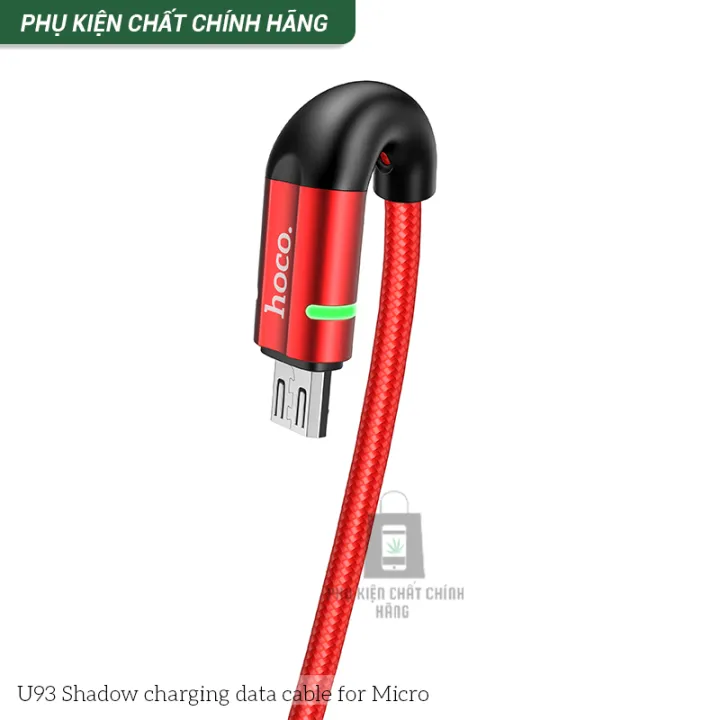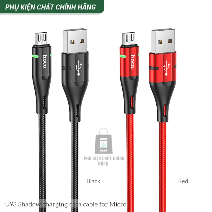 Cáp U93 Là loại cáp sạc nhanh với dòng điện tối đa 2.4A, có đèn LED khi sạc điện, thiết kế ngoại hình nổi bật 2 mầu Đỏ và Đen. Chất liệu dây bên ngoài được bện bằng sợi Polypropylene có tính bền cơ học cao (bền xé và bền kéo đứt), khá chắc chắn, không mềm dẻo như PE, không bị kéo giãn dài do đó được chế tạo thành sợi. Chịu được nhiệt độ cao, có tính chất chống thấm oxy, hơi nước, dầu mỡ và các khí khác. Lõi dây được kết lưới bằng 118 sợi dây đồng. Chất liệu đầu nối là hợp kim nhôm phủ sơn tĩnh điện, chống tê điện hoặc chạm mát cực tốt.
