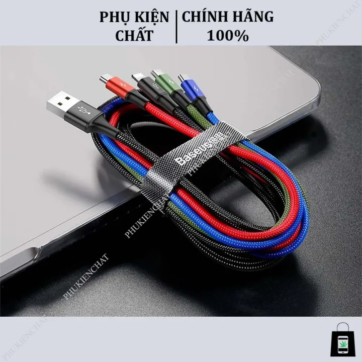 Đặc tính sản phẩm Dây sạc 4 đầu Baseus 4 in 1 lightning micro usb type c - cáp sạc đa năng cho iphone samsung hàng cao cấp hộp mới.