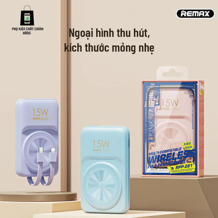 Sạc dự phòng 10000mAh không dây Remax RPP281 cao cấp - Hàng Chính Hãng Bảo Hành 12 tháng.